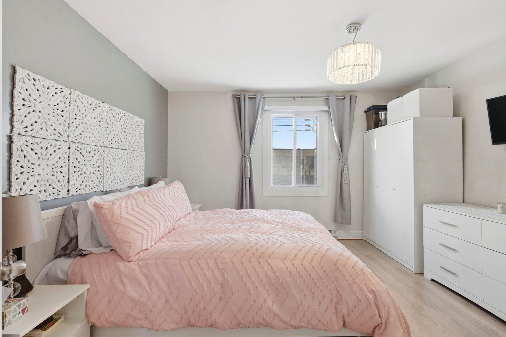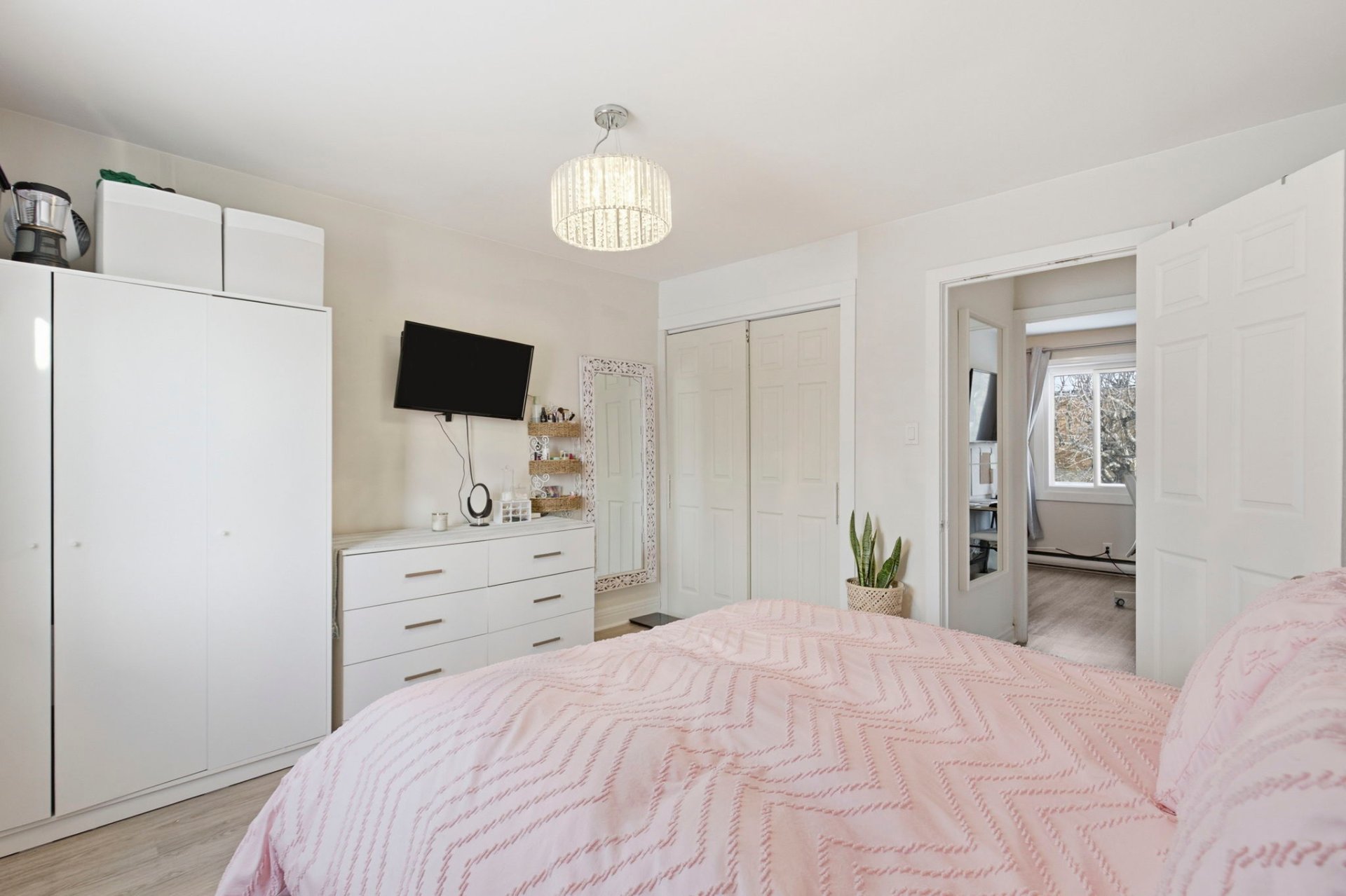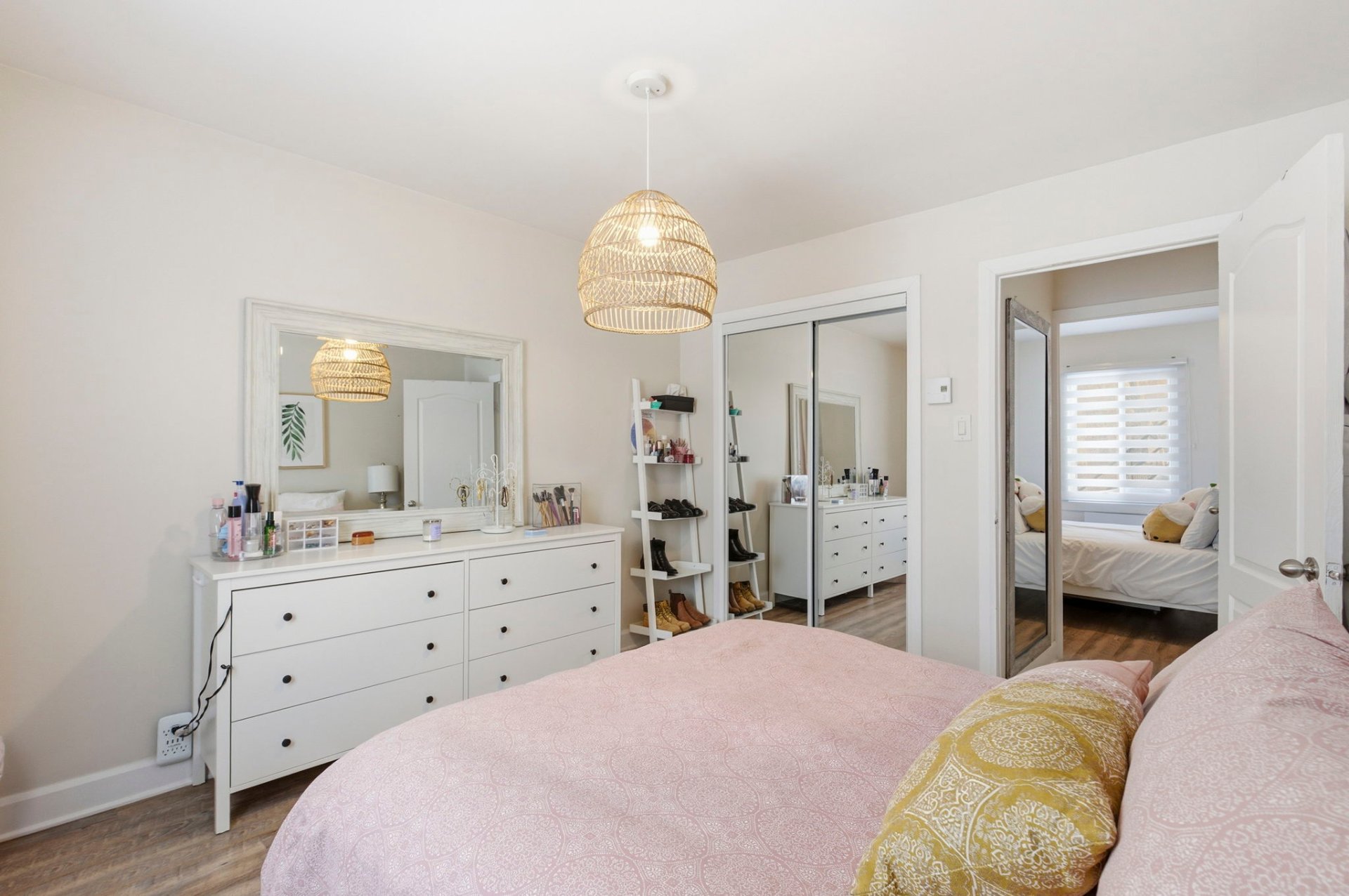 chambre principale avec garde-robe double portes miroirs