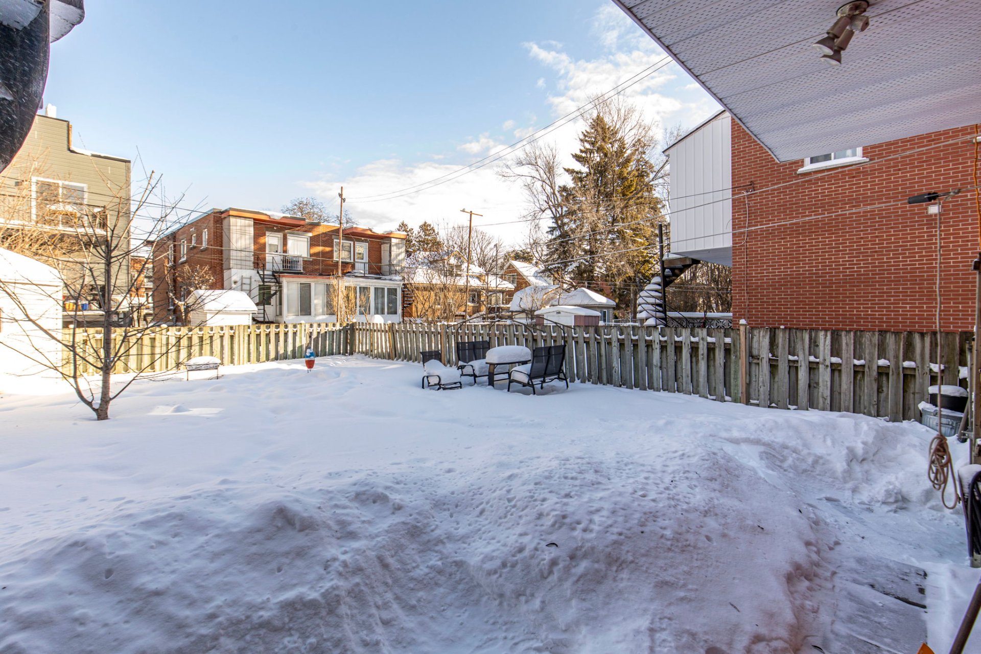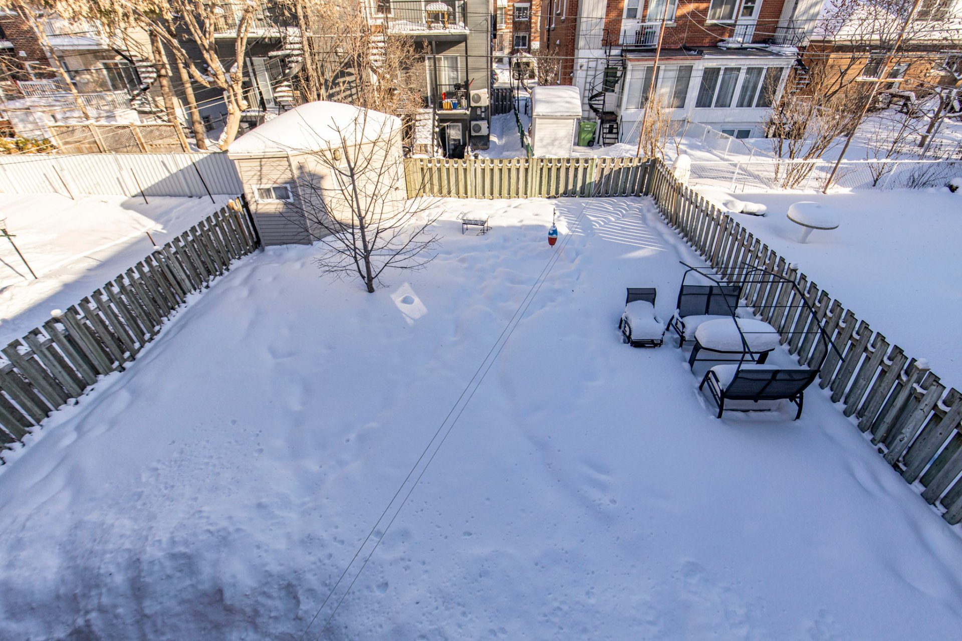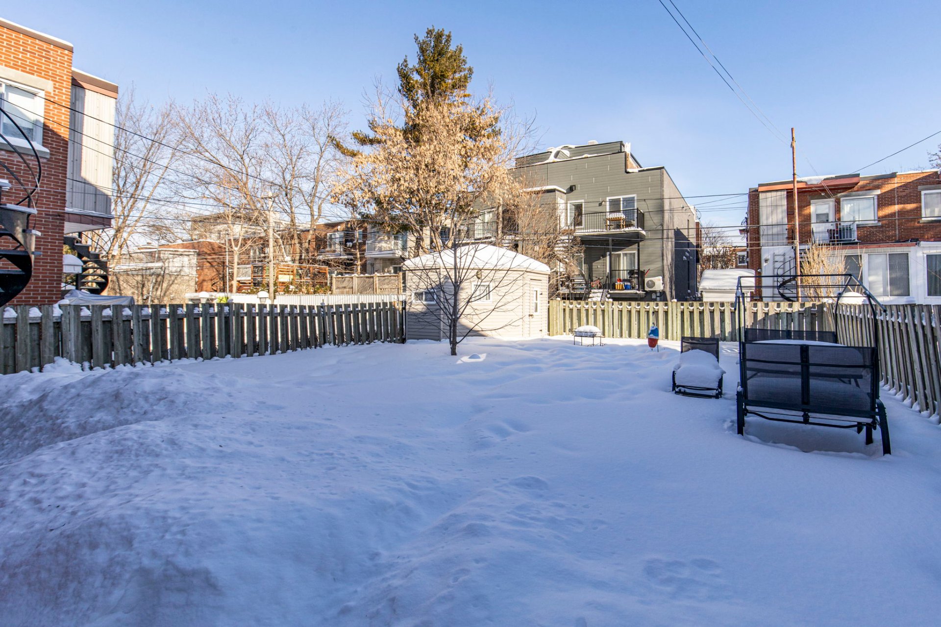 - Grande cour entièrement clôturée, aménagée avec cabanon