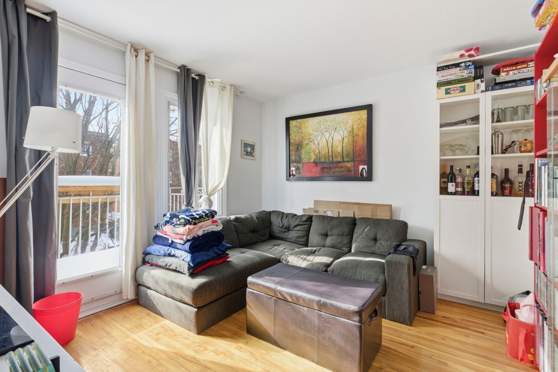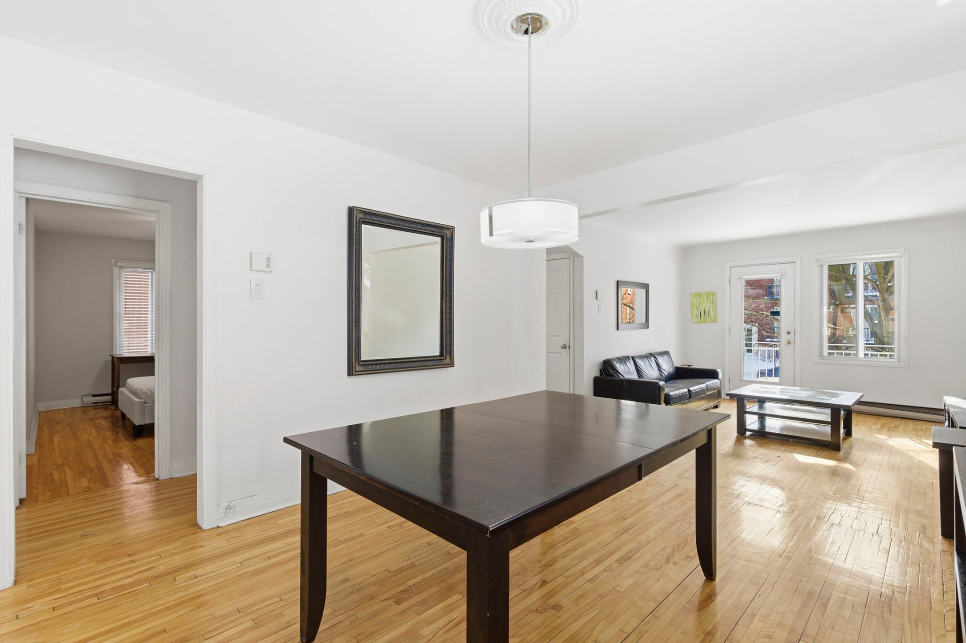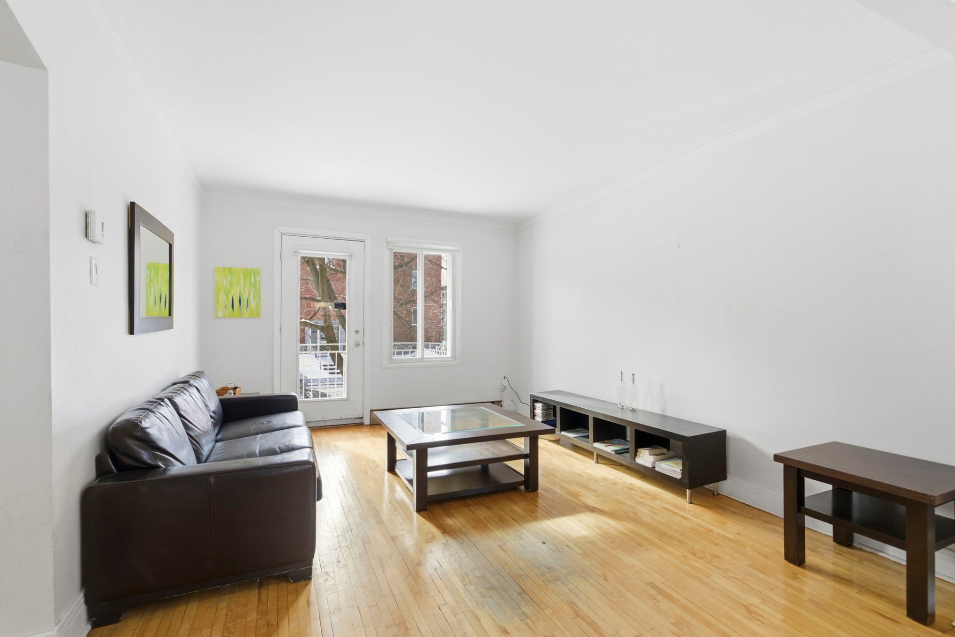 - Salon avec fenestration et porte illuminant la pièce,