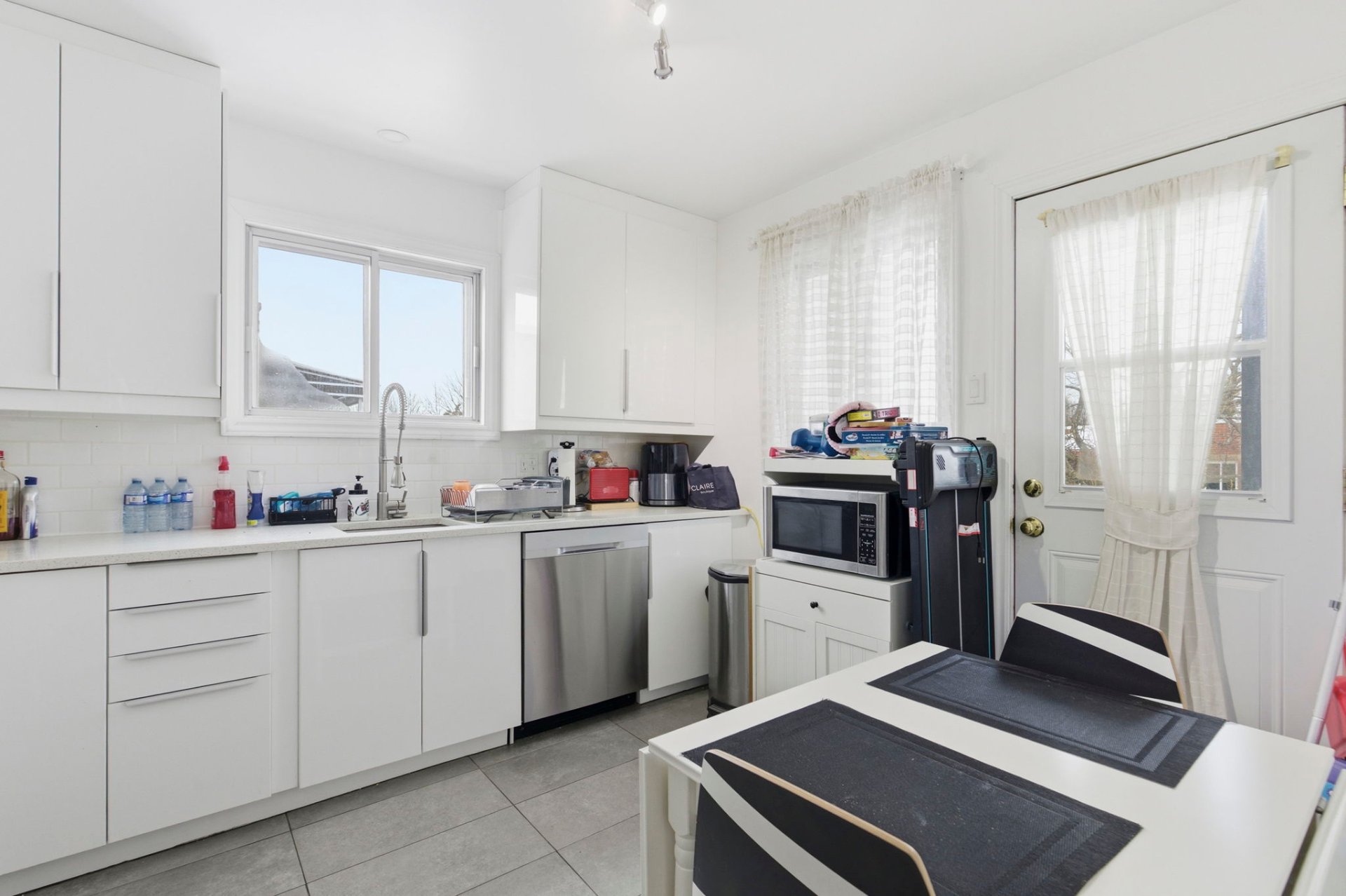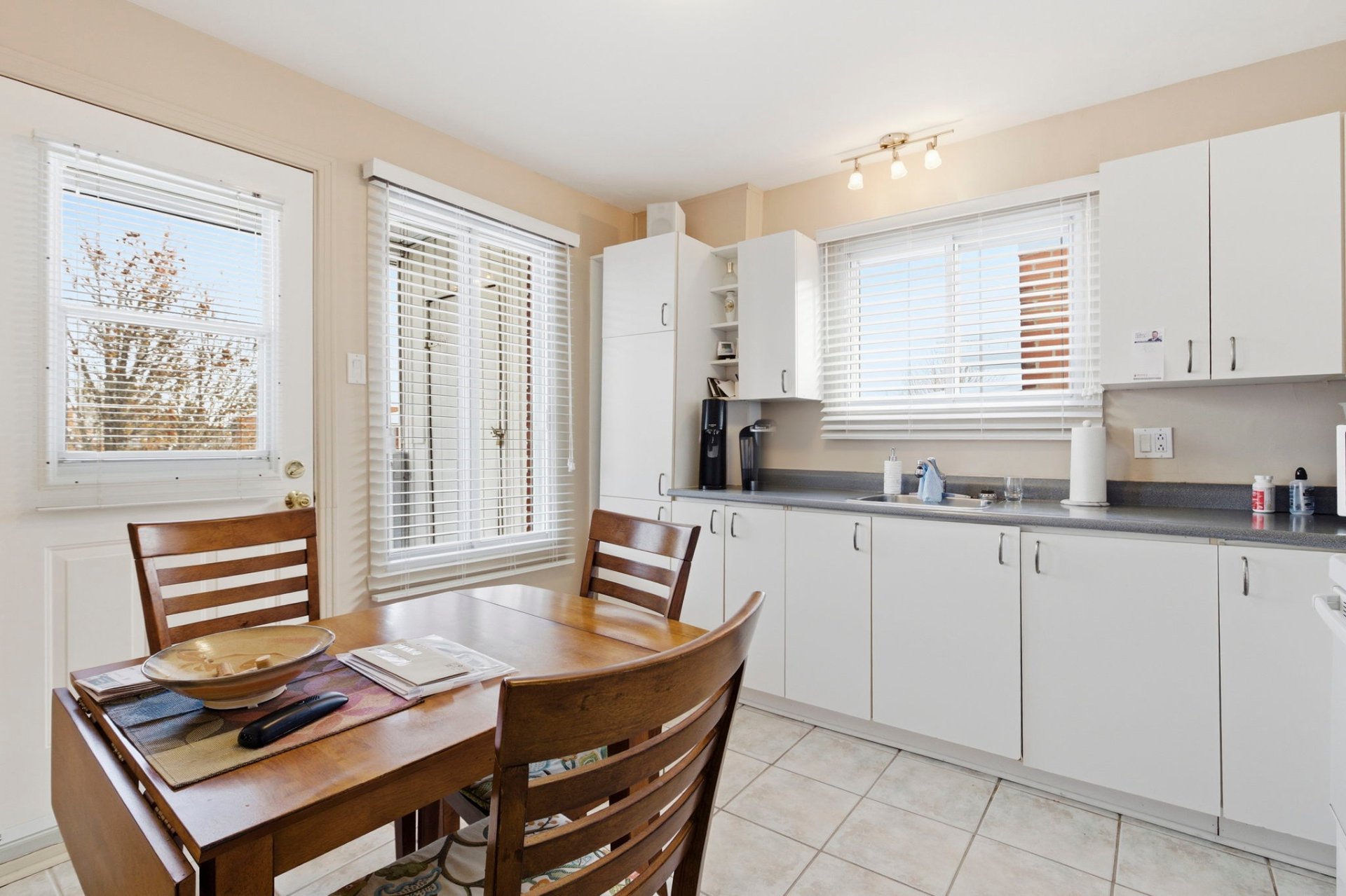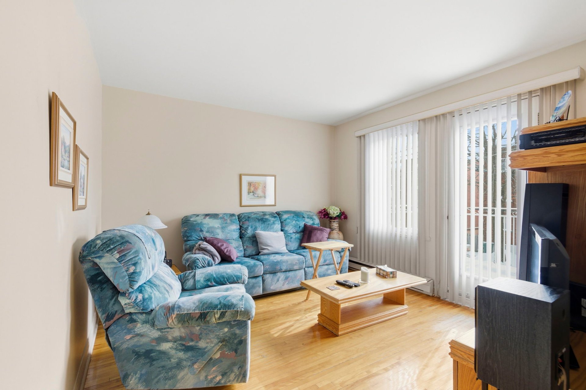 - Salon avec fenestration et porte illuminant la pièce,