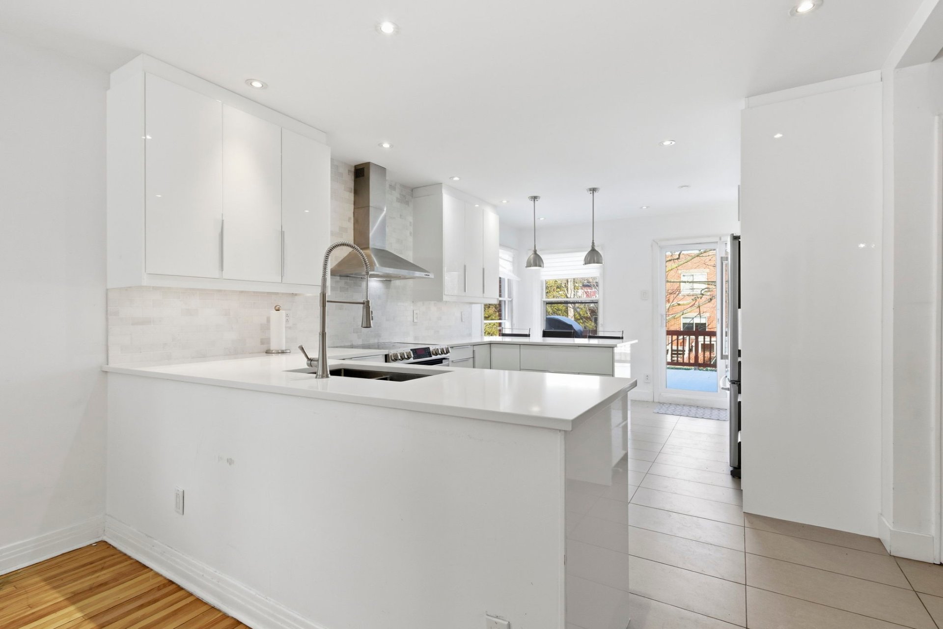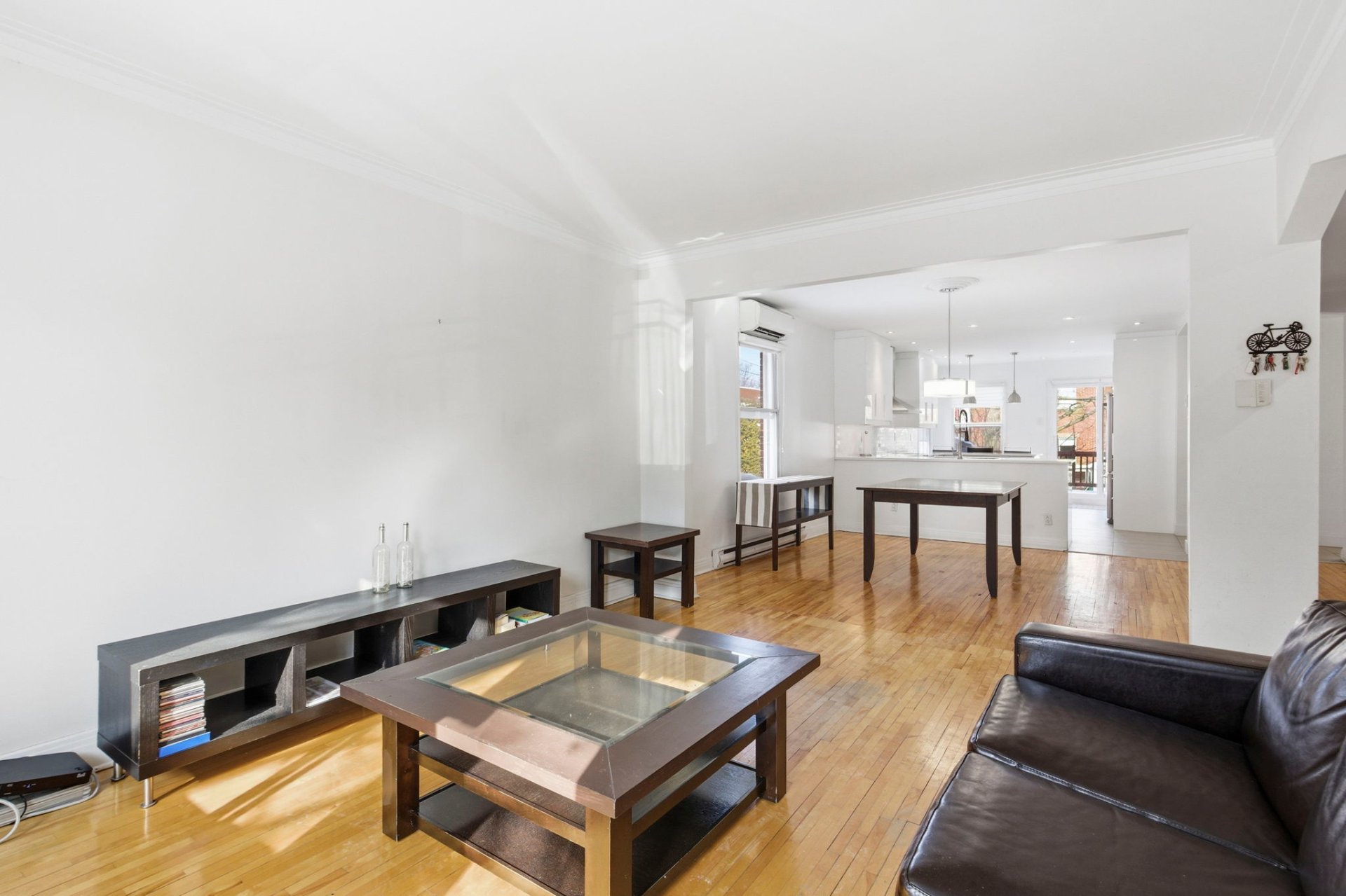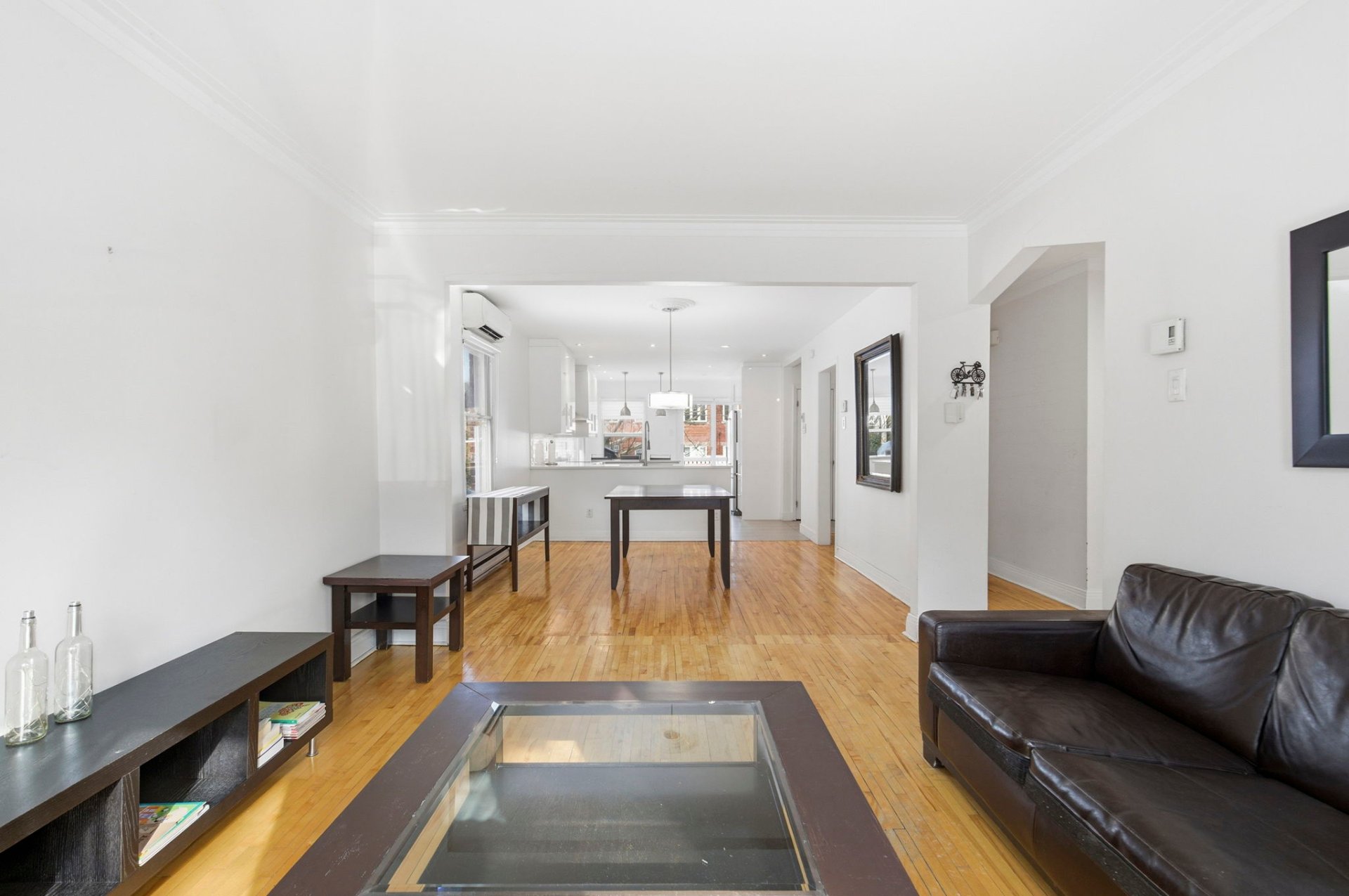 plancher lattes de bois et ouvert sur la salle à manger et